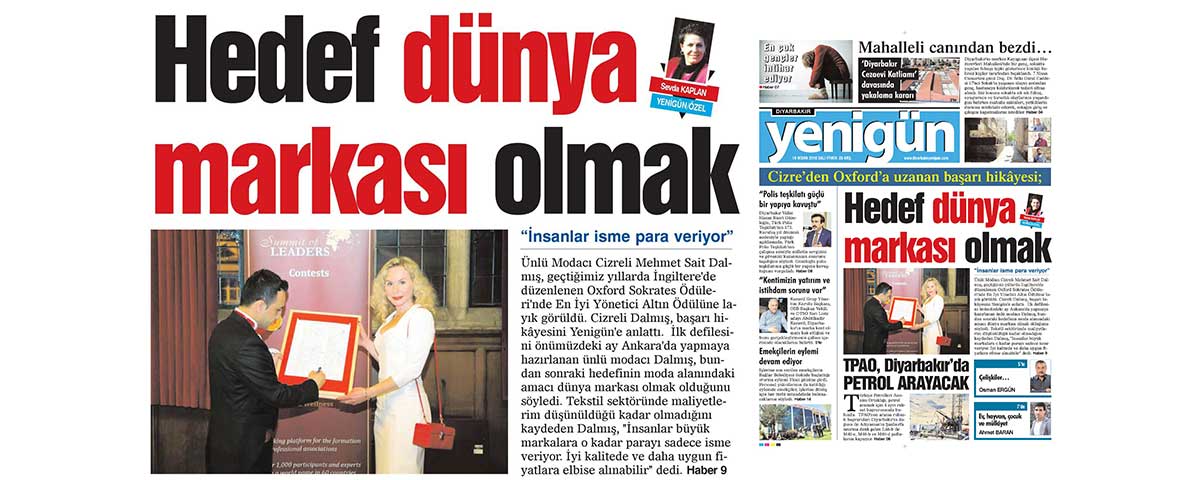 Hedef dünya maıtası olmak Ünlü Modacı Cizreli Mehmet Sait Dalmış, geçtiğimiz yıllarda İngiltere’de düzenlenen Oxford Sokrates Ödüleri’nde En İyi Yönetici Altın Ödülüne layık görüldü. Cizreli Dalmış, başarı hikâyesini Yenigün’e anlattı. İlk defilesini önümüzdeki ay Ankara’da yapmaya hazırlanan ünlü modacı Dalmış, bundan sonraki hedefinin moda alanındaki amacı dünya markası olmak olduğunu söyledi. Tekstil sektöründe maliyetlerim düşünüldüğü kadar olmadığını kaydeden Dalmış, “İnsanlar büyük markalara o kadar parayı sadece isme veriyor. İyi kalitede ve daha uygun fiyatlara elbise alınabilir” dedi. Haber 9 İnsanlar isme para veriyor”aCizre’den Oxford’a uzanan başarı hikâyesi; DİYARBAKIR – Ünlü Modacı Cizreli Mehmet Sait Dalmış, geçtiğimiz yıllarda İngiltere’de düzenlenen Oxford Sokrates Ödüleri’nde En İyi Yönetici Altın Ödülüne layık görüldü. Cizreli Dalmış, başarı hikayesini Yenigün’e anlattı. Modacı olmaya nasıl karar verdiniz? Modacı olmaya küçük yaşlarda yapmaya karar verdim, elime geçirdiğim bütün kağıtlara, sokaktaki kirli kağıtlar dahil, resimler ve modeller çiziyordum. İlkokul 5. Sınıfta sokakta kâğıt yığını görmüştüm elimi atınca canım çok yanmıştı meğerse sonradan öğrendiğim akrep sokmuştu. Parmağım baya şişmişti. Ağlayarak eve geldim, üstüne annem de enseme bir iki tokat attı ‘ne işin var kirli kâğıtlarla sana kırtasiyeden istediğin kadar alalım ödevini yapmak için’ dedi ellerimin halini görünce ağlayıp durmuştu, sonra Ablam baktı, iğne ucuyla açarak sıkmıştı. Defile düzenlediniz mi? Henüz daha defile yapmadım. Önümüzdeki ay defile yapmayı düşünüyorum. Hazırlık aşamasındayım bitince Ankara’da ilk defilemi yapacağım. Cizreli bir genç olarak. Dünya Liderler zirvesi Oxford Sokrates komitesi tarafından en iyi yönetici altın ödülüne layık görüldünüz, bu süreci biraz anlatabilir misiniz? Ben daha küçük yaşlardan beri iş hayatına atılmış biriyim. Liseden sonra Bölgede ilk Sigorta Şirketini kurdum. 2000 yılında kurulan ve halen faaliyeti devam etmekte olan uluslararası ‘Oxford Sokrates’ En İyi Eğitim Şirketi Altın Ödülü’ ve ‘Yılın En iyi Yöneticisi’ ödülünü çifte dalda ödül alarak tescillenmiş marka haline gelen Danışmanlık şirketinin Kurucusu ve Yönetim Kurulu başkanlığını yapmaktayım. Ve bir sene sonra uluslararası Aristo Thales ödülünü de aldım. Başarmak için hayal kurmak daha sonra da hayalin gerçekleşmesi için çaba göstermek gerekir. Bu ödülden sonra hayatınızda değişiklikler oldu mu? 2000 senesinde bölgede ilk sigorta şirketini kurdum ve çalıştığımız sigorta tarafından Türkiye ikinciliği Güneydoğu Anadolu birinciliği ödüllerini de almıştım. Küçük yaşta ödül almaya alışkın olduğum için çok fazla bir şey değişmedi. Aynı zamanda ben bir iş yaptım mı en iyisini yapmaya çalışırım. Moda alanında bugüne kadar kimlerle çalıştınız? Ürettiğim bütün elbiselerin tasarımcılığını, modelistliğini ve desinatörlüğünü kendim yapıyorum. Hazır giyim olarak Avrupa’nın 17 ülkesine ve Balkanlara satıyoruz. Özellikle bir bayanın vücut hatlarına uygun şekilde, kusurları kapatmaya yönelik modeller çıkartmaya özen gösteriyorum. Göz yanıltmalar yani; göbek varil Mm sa bunu kapatmaya yönelik tasarımlar yapıyorum. Bir defa sipariş veren kişiler elbiselerimizin kalitesini çok beğenerek koleksiyondaki bütün elbiselerin çoğunu sipariş ediyorlar. Dünyaca ünlü ‘e ticaret’ sitelerinde elbiselerimizin kopyalarının çalınarak oluşturulan taklitlerine rastlıyoruz. Ve buradan anladığım kadarıyla doğru bir yolda ilerlediğimi anlıyorum. Moda alanında ki hedefleriniz nelerdir? Dünya markası olmak. Ünlü markalar arasında adımızı duyurmak. Aynı kalitede daha uygun fiyatlara elbiseleri müşterilere ulaştırmak. Tekstil sektöründe maliyetler düşünüldüğü kadar değil. İnsanlar büyük markalara o kadar parayı sadece isme veriyor. İyi kalitede ve daha uygun fiyatlara elbise alınabileceğini kanıtlamak. Hayattaki vizyonum her zaman yaptığım işi en iyi yapabilmektir. Özgün trendlere uygun koleksiyon hazırlamadaki belli aşamaları titizlikle takip ediyorum. Irak Kürt Bölgesel Yönetiminde bir defile düzenlemeyi düşünür müsünüz? Evet düşünüyorum. Bütün dünya insanlarına örflerine adetlerine hitap edecek tarzda modeller yapmayı düşünüyorum. İngiltere’de düzenlenen Oxford Sokrates Ödüleri’nde En İyi Yönetici Altın Ödülüne layık görülen ünlü modacı Cizreli Mehmet Sait Dalmış, ilk defilesini önümüzdeki ay Ankara’da yapmaya hazırlanıyor. Dalmışın moda alanındaki amacı dünya markası olmak,