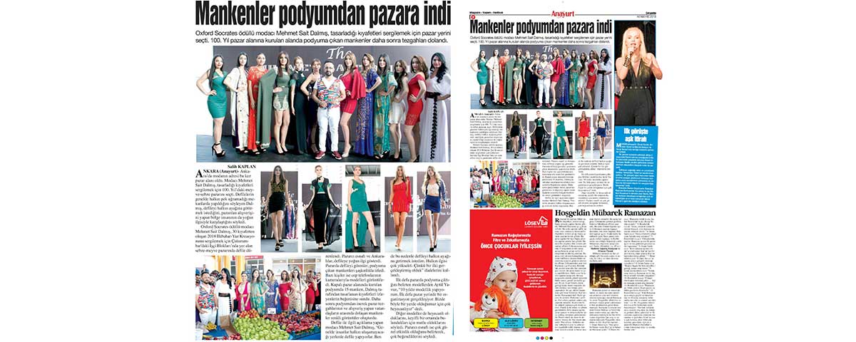 Mankenler podyumdan pazara indi Oxford Socrates ödüllü modacı Mehmet Sait Dalmış, tasarladığı kıyafetleri sergilemek için pazar yerini seçti. 100. Yıl pazar alanına kurulan alanda podyuma çıkan mankenler daha sonra tezgahları dolandı. Salih KAPLAN ANKARA (Anayurt)- Ankara’da modanın adresi bu kez pazar alanı oldu. Modacı Mehmet Sait Dalmış, tasarladığı kıyafetleri sergilemek için 100. Yıl’daki meyve-sebze pazarını seçti. Defilelerin genelde halkın pek uğramadığı mekanlarda yapıldığını söyleyen Dalmış, defileyi halkın ayağına götürmek istediğini, pazardan alışverişini yapan bölge insanının da yoğun ilgisiyle karşılaştığını söyledi. Oxford Socrates ödüllü modacı Mehmet Sait Dalmış, 30 kıyafetten oluşan 2018 İlkbahar-Yaz Kreasyonunu sergilemek için Çukurambar’daki İşçi Blokları’nda yer alan sebze-meyve pazarında defile düzenlendi. Pazarcı esnafı ve Ankaralılar, defileye yoğun ilgi gösterdi. Pazarda defileyi görenler, podyuma çıkan mankenleri şaşkınlıkla izledi. Bazı kişiler ise cep telefonlarının kameralarıyla modelleri görüntüledi. Kapalı pazar alanında kurulan podyumda 15 manken, Dalmış tarafından tasarlanan kıyafetleri izleyenlerin beğenisine sundu. Daha sonra podyumdan inerek pazar tezgahlarının ve alışveriş yapan vatandaşların arasında dolaşan mankenler renkli görüntüler oluşturdu. Defile ile ilgili açıklama yapan modacı Mehmet Sait Dalmış, “Genelde insanlar halkın ulaşamayacağı yerlerde defile yapıyorlar. Ben de bu nedenle defileyi halkın ayağına getirmek istedim. Halkın ilgisi çok yüksekti. Çünkü bir ilki gerçekleştirmiş olduk” ifadelerini kullandı. İlk defa pazarda podyuma çıktığını belirten modellerden Aytül Yavuz, “10 yıldır modellik yapıyorum. İlk defa pazar yerinde bir organizasyon gerçekleşiyor. Bizde böyle bir yerde olduğumuz için çok heyecanlıyız” dedi. Diğer modeller de heyecanlı olduklarını, keyifli bir ortamda bulundukları için mutlu olduklarını söyledi. Pazarcı esnafı ise çok güzel etkinlik olduğunu belirterek, çok beğendiklerini söyledi.
