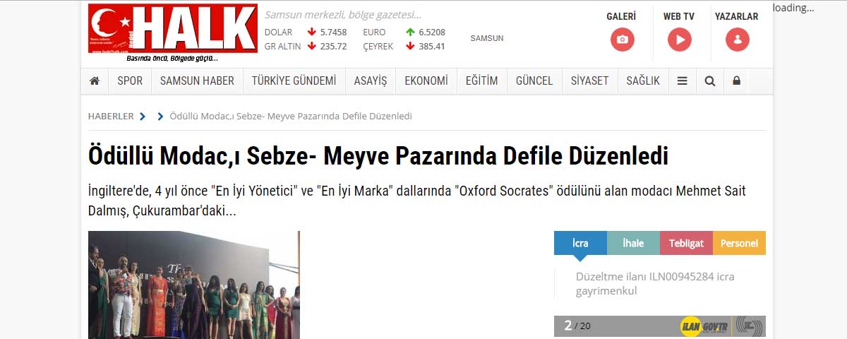 İngiltere’de, 4 yıl önce “En İyi Yönetici” ve “En İyi Marka” dallarında “Oxford Socrates” ödülünü alan modacı Mehmet Sait Dalmış, Çukurambar’daki İşçi Blokları’nda bulunan sebze-meyve pazarında defile düzenledi.