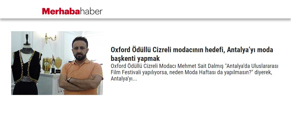 Oxford Ödüllü Cizreli Modacı Mehmet Sait Dalmış “Antalya’da Uluslararası Film Festivali yapılıyorsa, neden Moda Haftası da yapılmasın?” diyerek, Antalya’yı moda başkenti yapmak istediğini ve konuyla ilgili projeleri olduğunu söyledi.